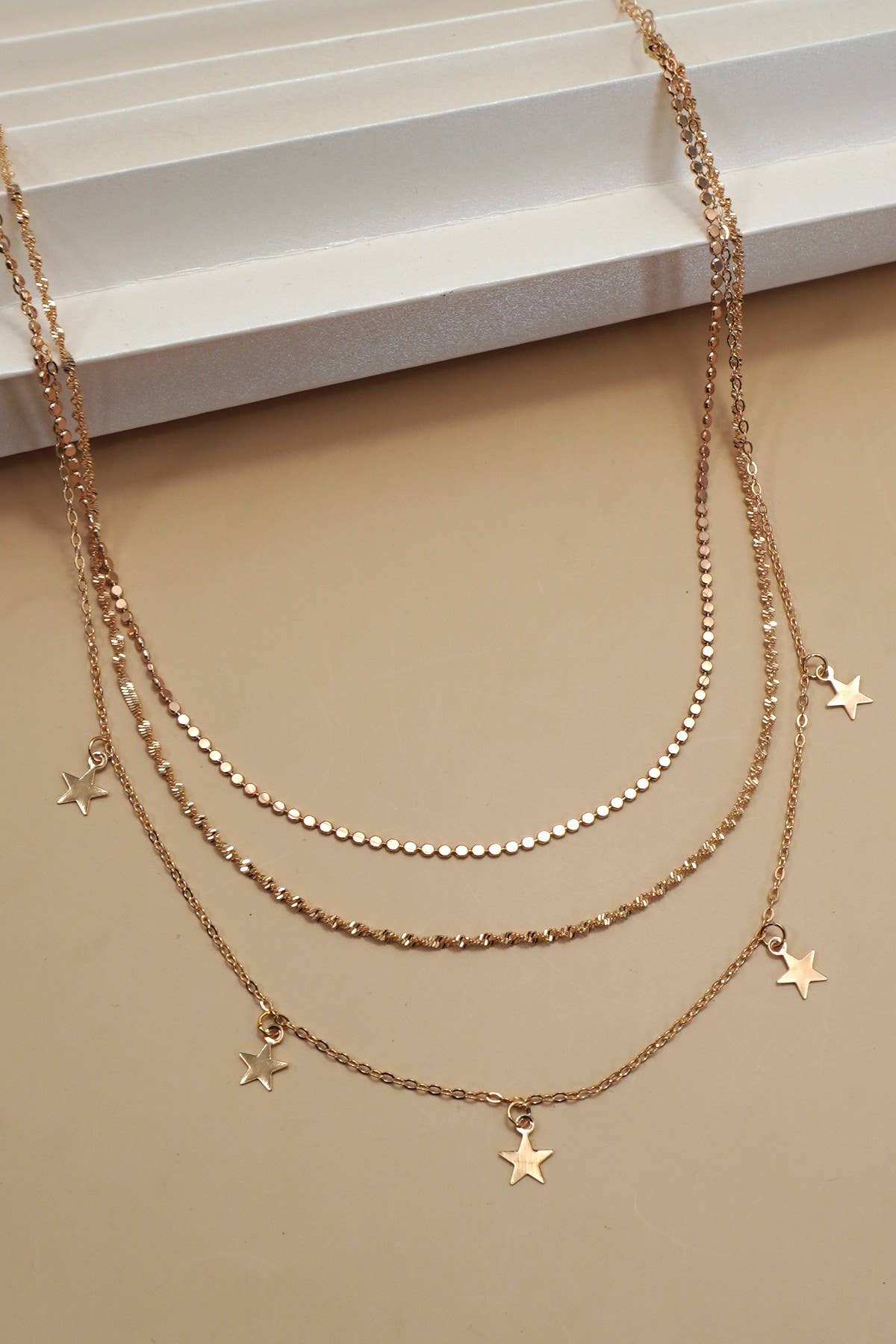 18K Stainless Steel Tarnish-Free Layered Necklace. Multi star pendant with layered chain Necklace, crafted from...