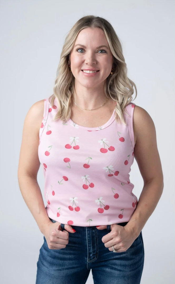 Add a sweet touch to your everyday wardrobe with the Cherry Bomb Ava Tank! This...
