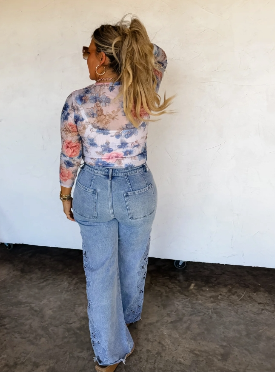 Get ready to turn heads in our Blue Clear Skies Mesh Long Sleeve Top. This...
