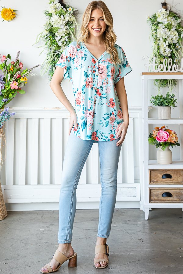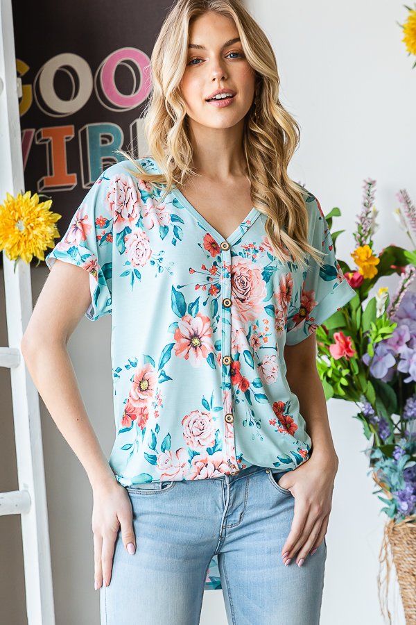 Freshen up your wardrobe with the effortless charm of our Mint Floral Dolman Sleeve V-Neck Top....