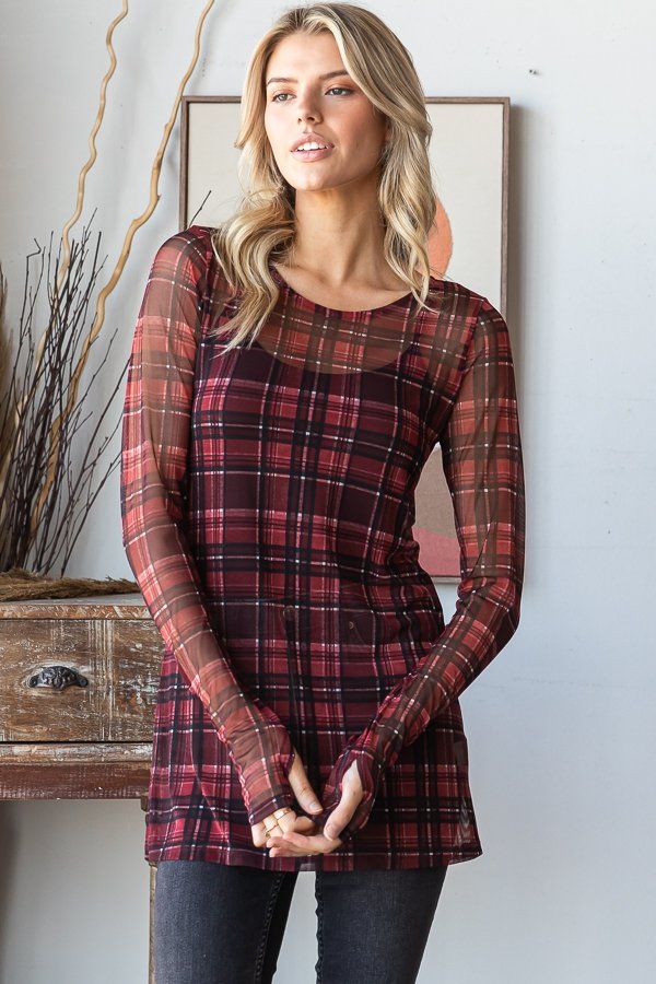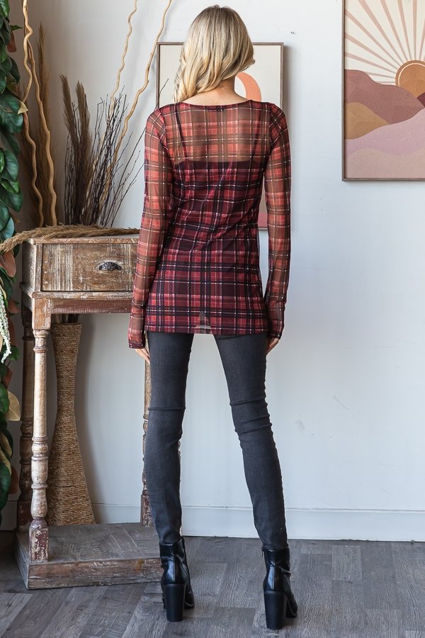 Turn up the festive charm with this playful plaid mesh top — perfect for layering...
