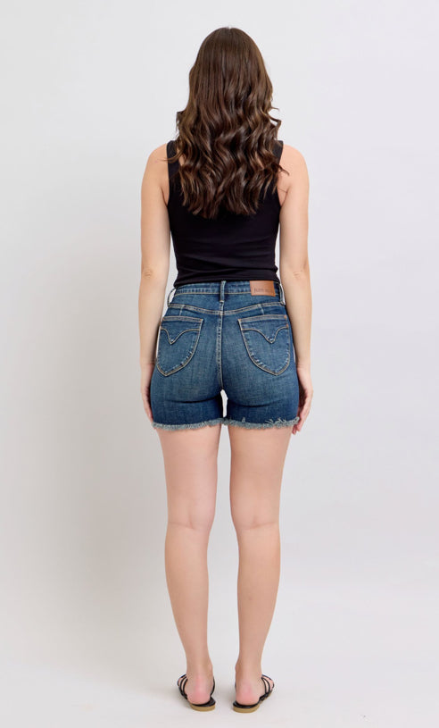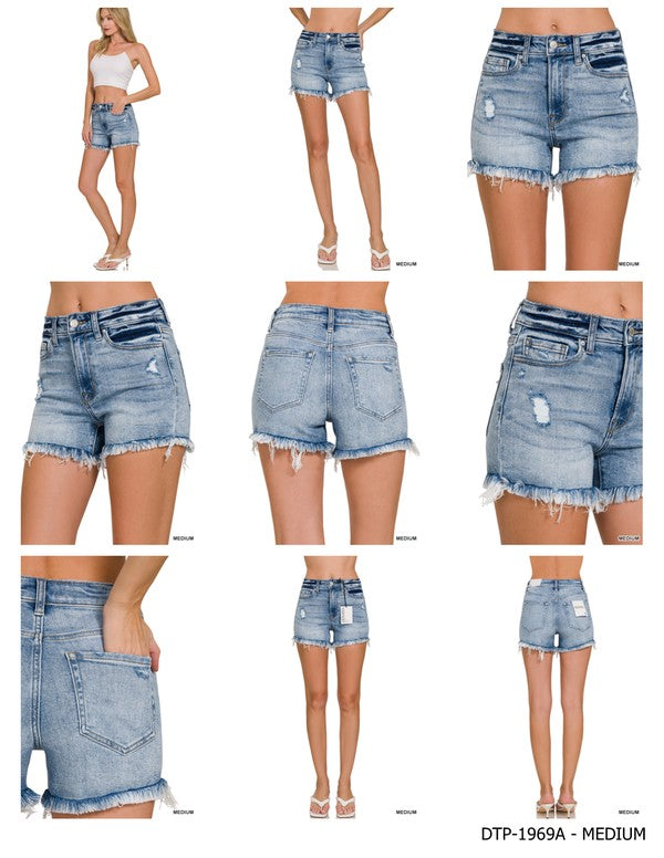 Color: Medium Blue Wash Cut: Shorts, 3.75" Inseam* Rise: High Rise, 10.5" Front Rise* Material: 91.4% Cotton,...