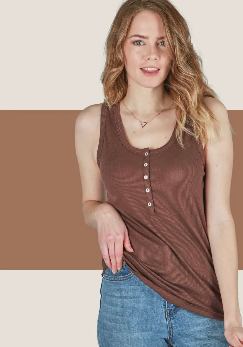 Ribbed Sleeveless 5-Button Henley Your new go-to essential just got a cute upgrade. The Ribbed...